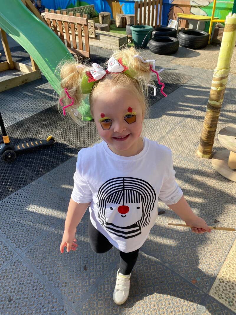 We took part in Red Nose Day 2022, to help raise money and have a funny face and hair day at Preschool.
